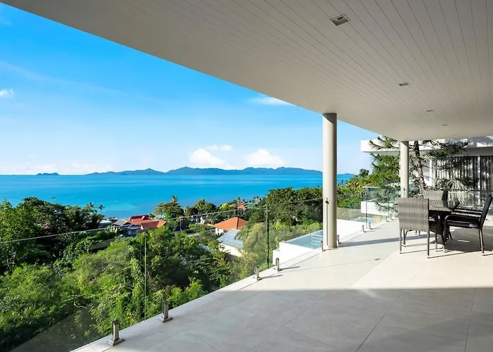 Om van uw vakantie in Ban Thong Phlu te genieten, verblijf in Penthouse Seaview Top Floor Ban Thong Phlu appartement van 120 m^2, gelegen op 2 km van Four Seasons Resort Koh Samui en binnen 20 minuten wandelen van Bang Por. Voor aangename vrijetijdsbesteding biedt het appartement gasten een zwembad en een privétuin, compleet met een zwembad.